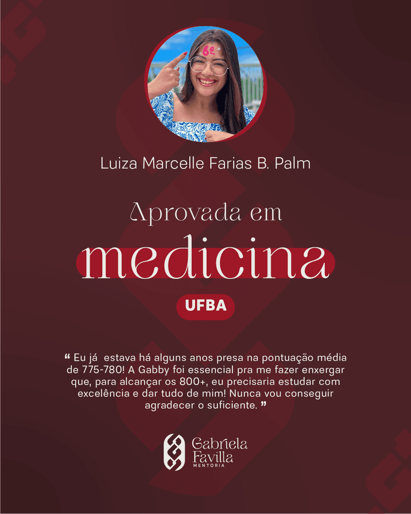 Aprovada em Medicina mais de 10x na UNIFESP, USP, UFMG, UFLA e muitas outras